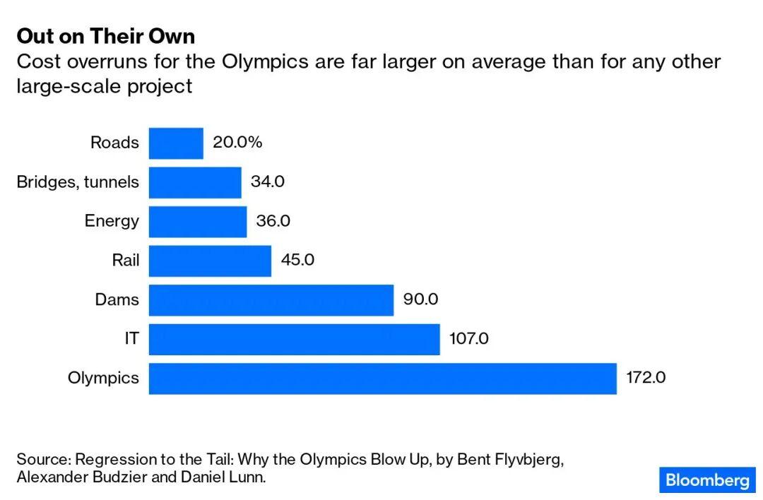 长期以来,大型综合赛事往往不可避免地存在预算超支的情况,平均超支率高达170%以上的现实,在经济下行的周期中,使得越来越多国家对申办奥运会产生心理阴影。